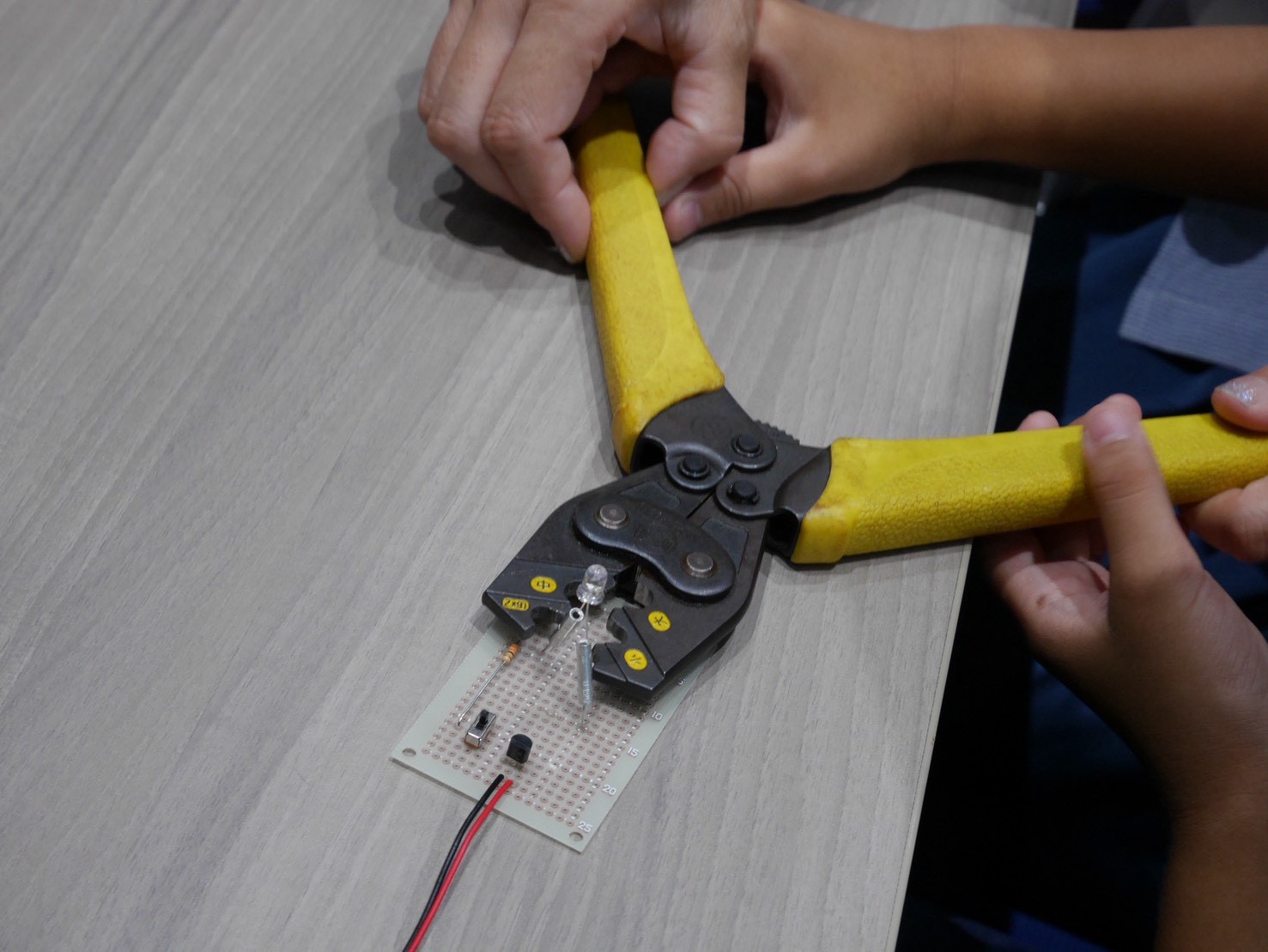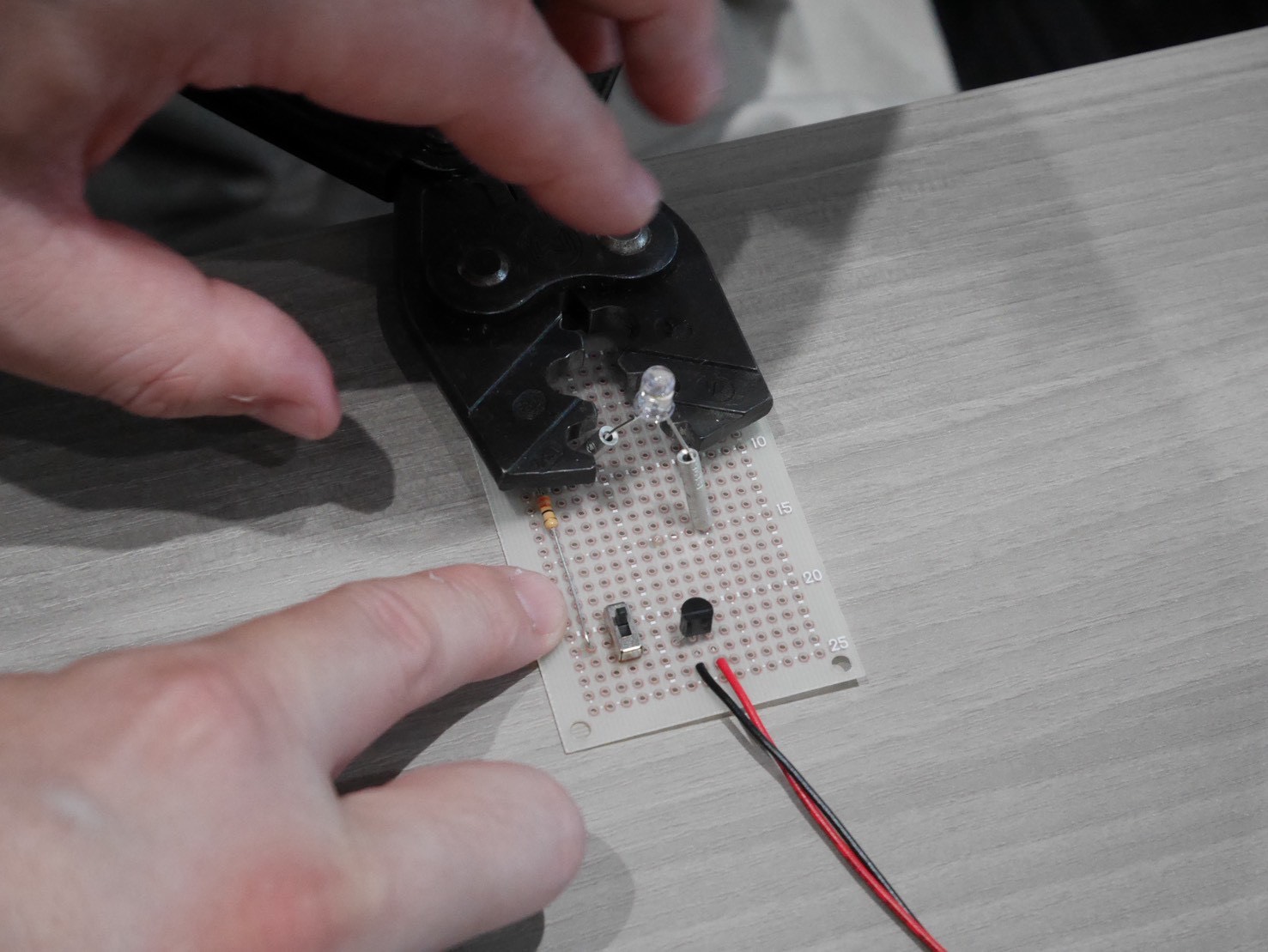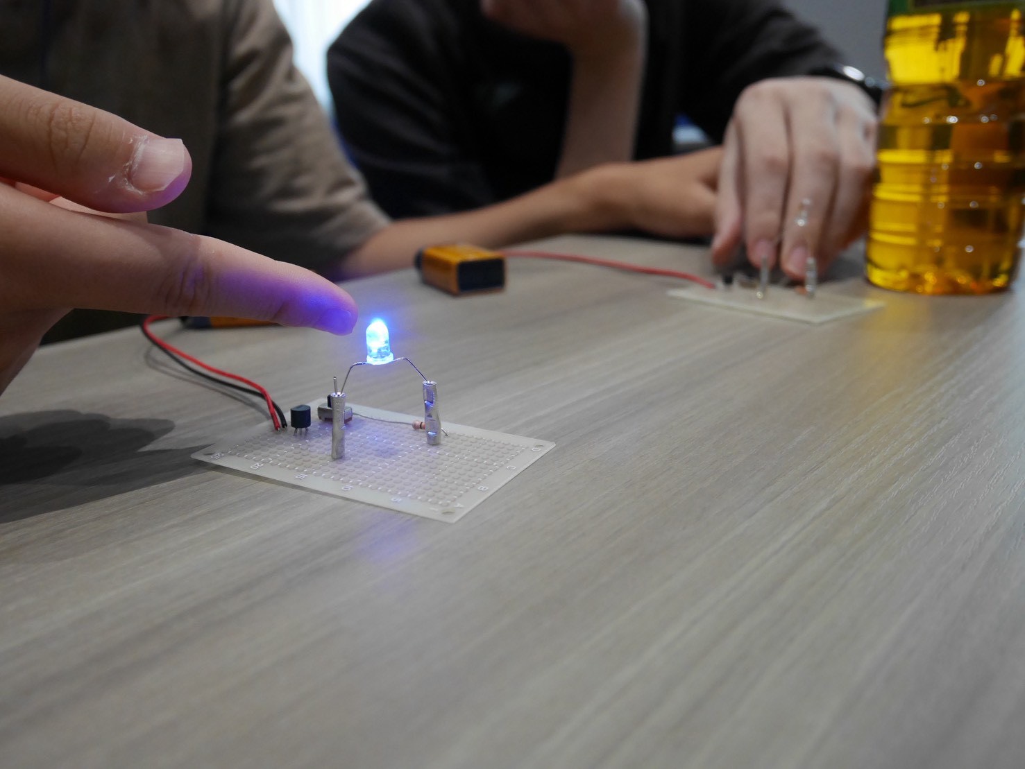 普段はなかなか触れることのない、 重たい器具を使ったり、 小さな電池を繋げたりして素敵な色の ライトを光らせることができました