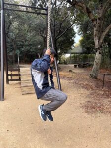 アスレチックでは、頂上を目指して一生懸命チャレンジ!