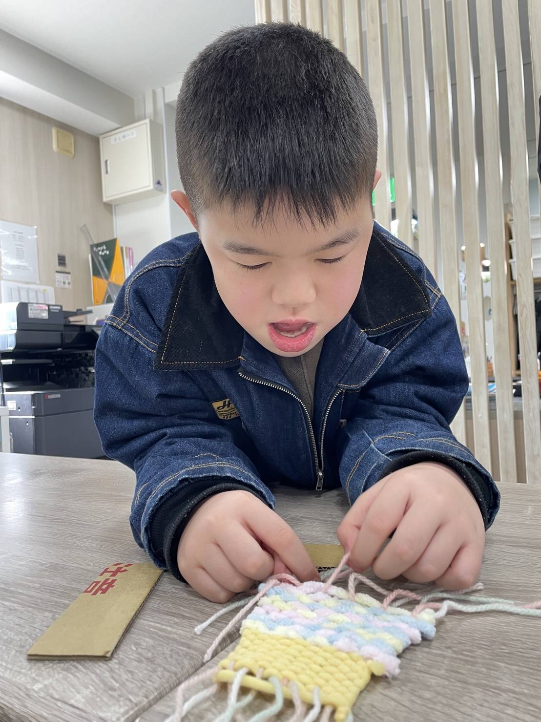 毛糸を通す順番や方向などを確認しながら 丁寧に進めていきます