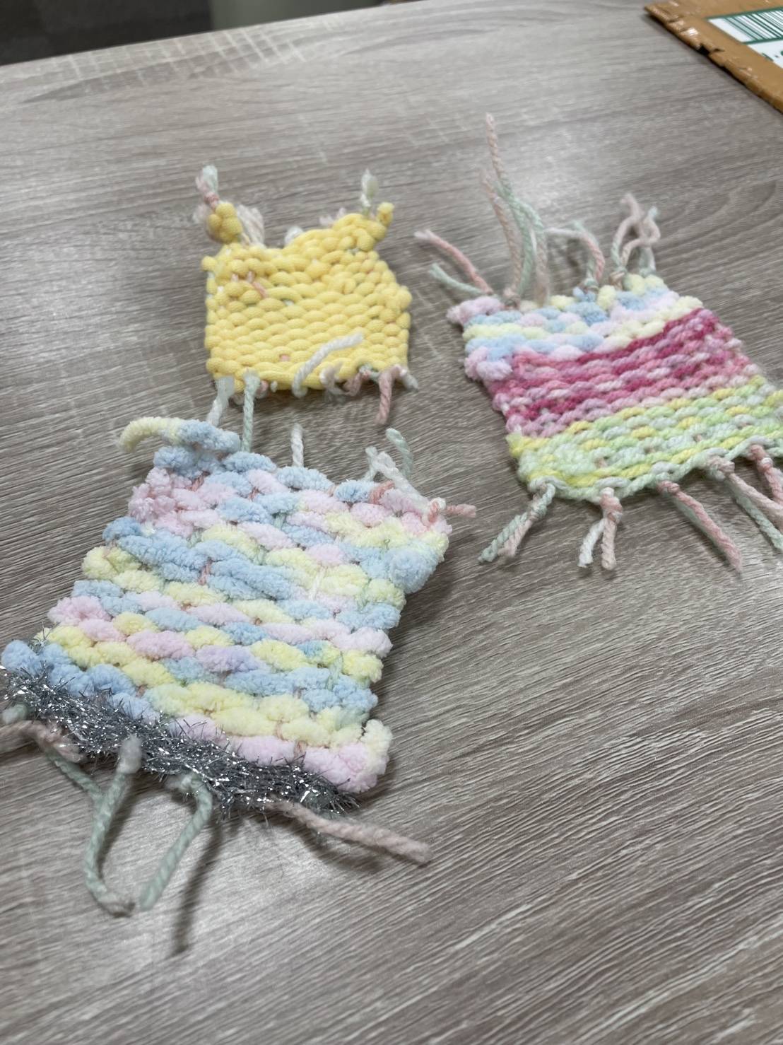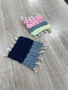 途中で色を変えたり糸の隙間を埋めたりして オリジナルのコースターが完成しました