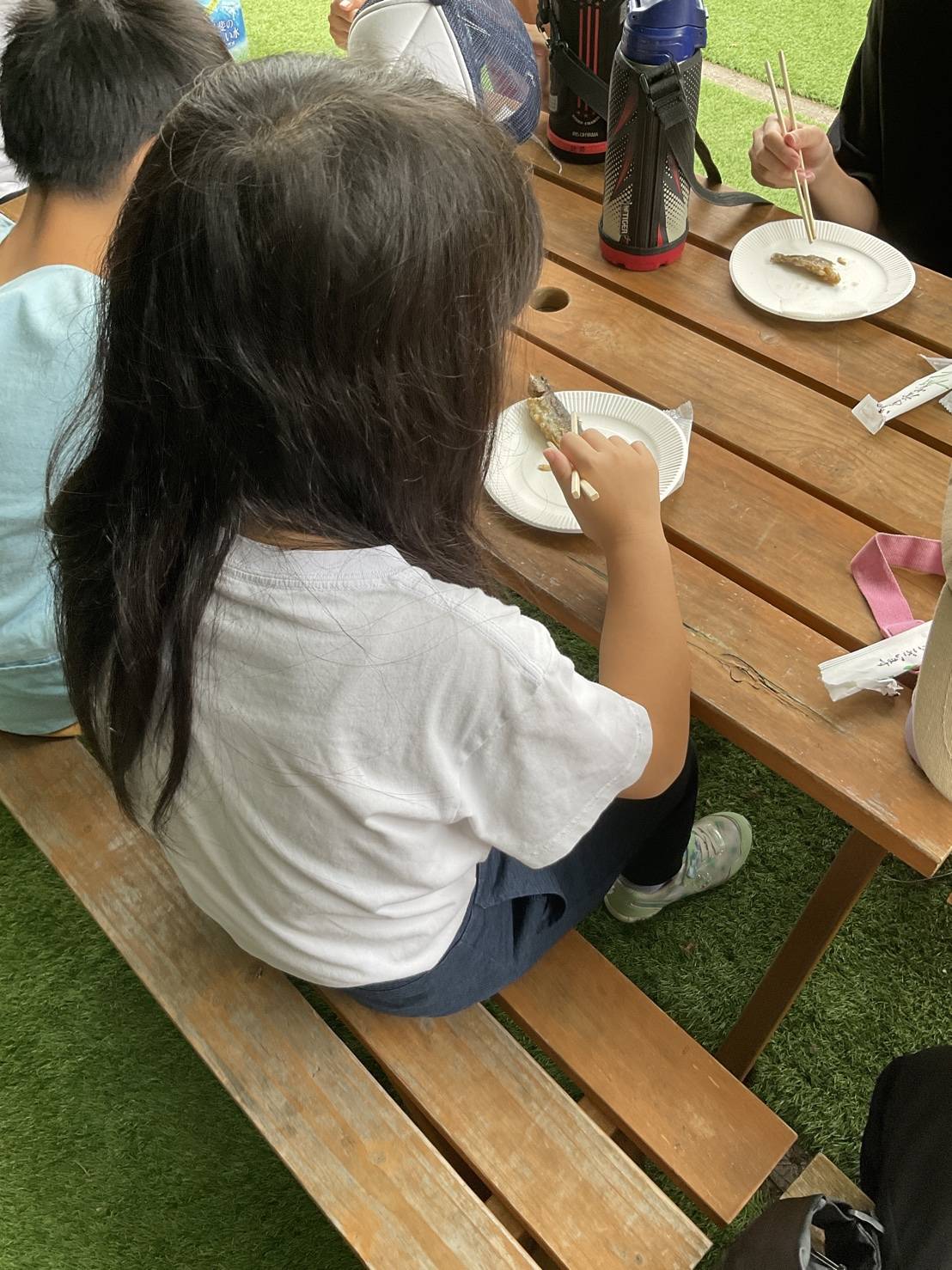 自分で釣った魚を 調理してもらい、 心を込めて『いただきます』をしました