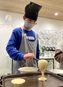 パンケーキ作りではホットプレートに生地を流して