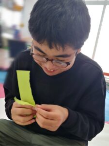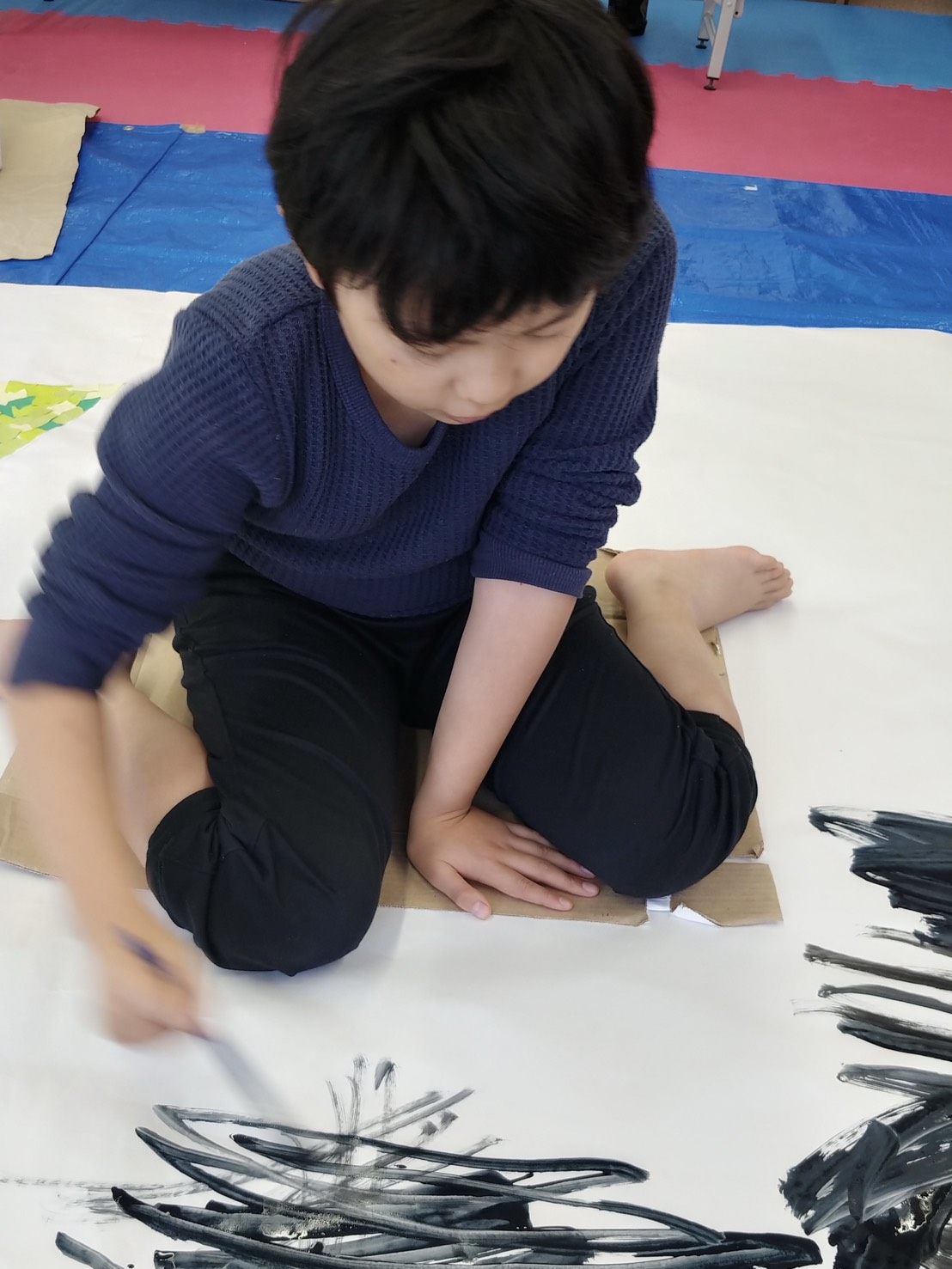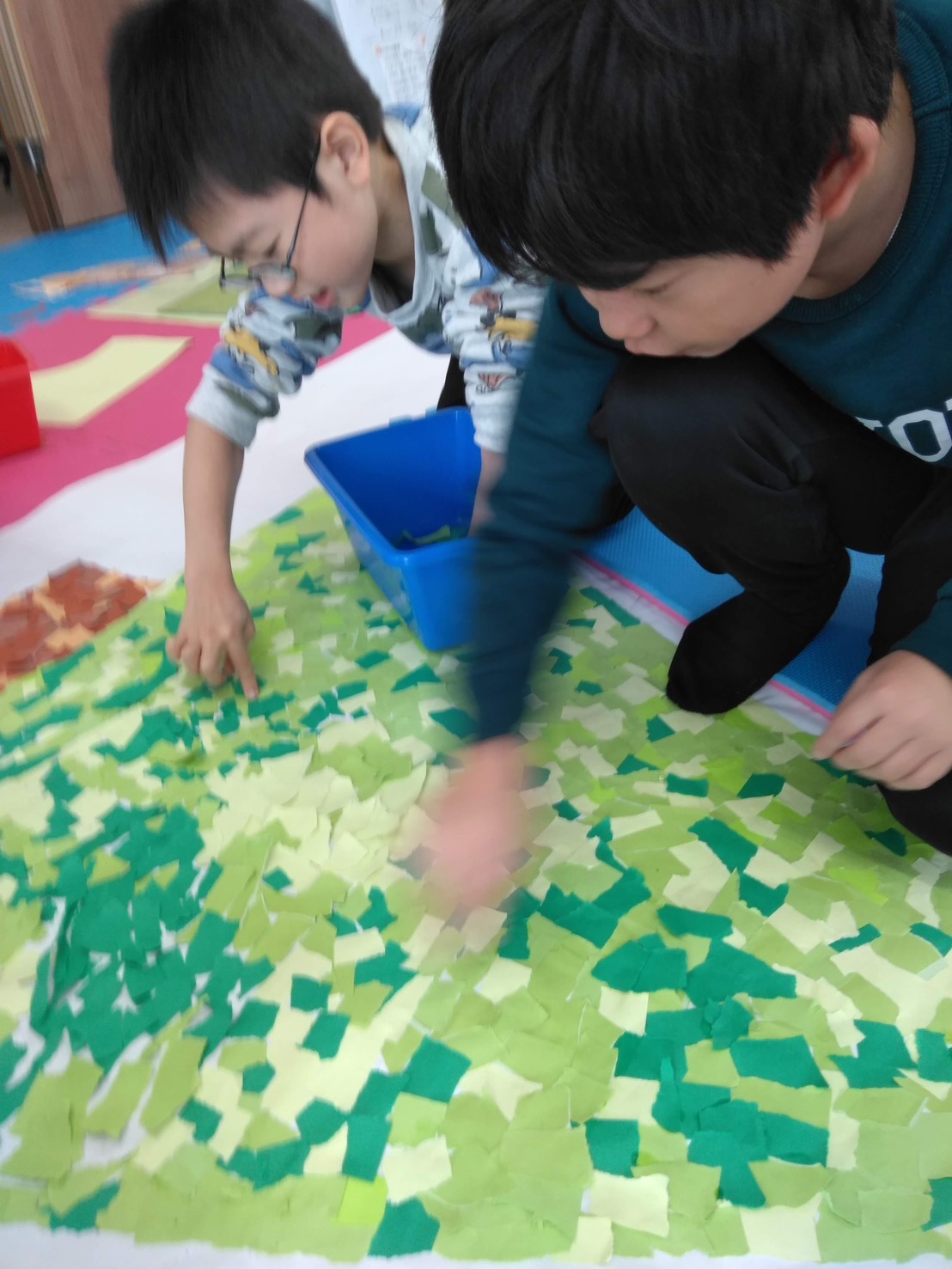 指先を使って紙をちぎり、そっと貼り付ける工程は手先の運動にもピッタリ! みんな集中して黙々と取り組んでいました