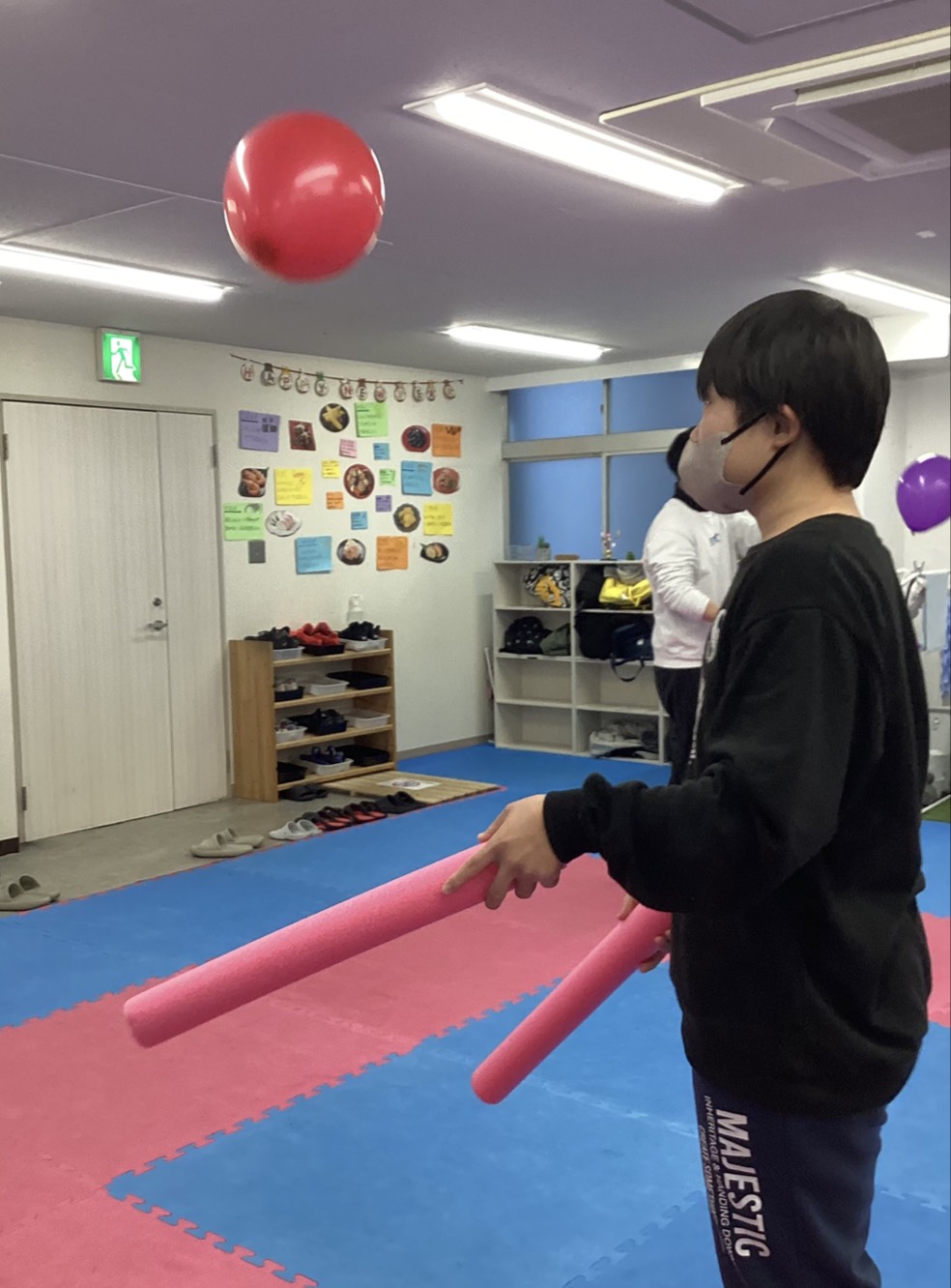 風船を目で追いながら左右交互に打つ