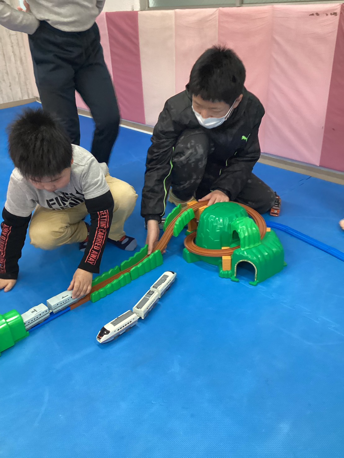 予想以上の盛り上がりだったプラレール遊び、 もっと難しい路線や複雑な路線をみんなで考えながら行いたいと思いました