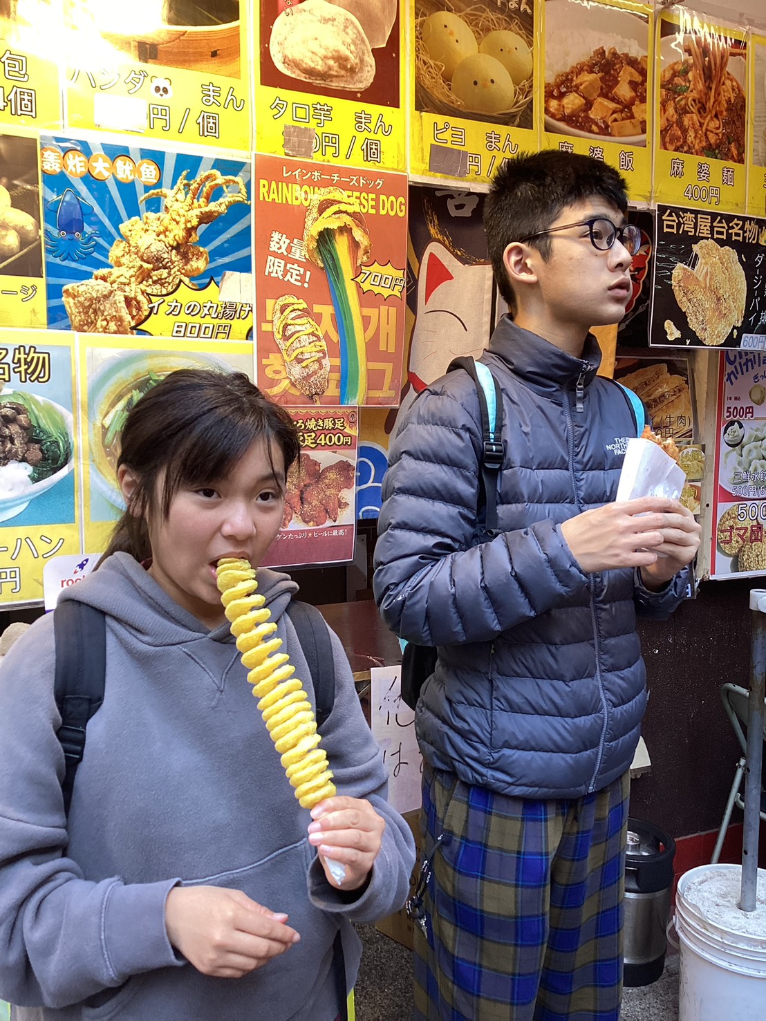 華やかな街並みと、 歩く道の両サイドに屋台のようにたくさんの食べ物が売っているので、 色々な物に興味を惹かれ、目移りしながらみんなで楽しく回りました