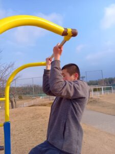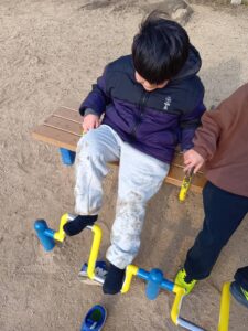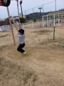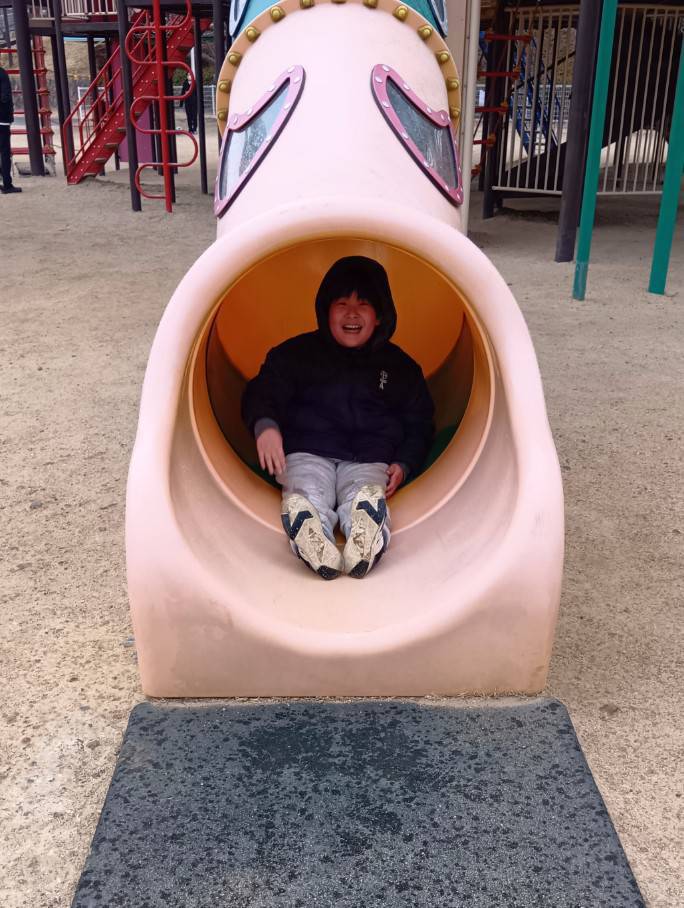 すべり台や大きな遊具で体を動かしそれぞれが「やってみたい!」 遊びに挑戦順番を守ったり 「先行っていいよ
