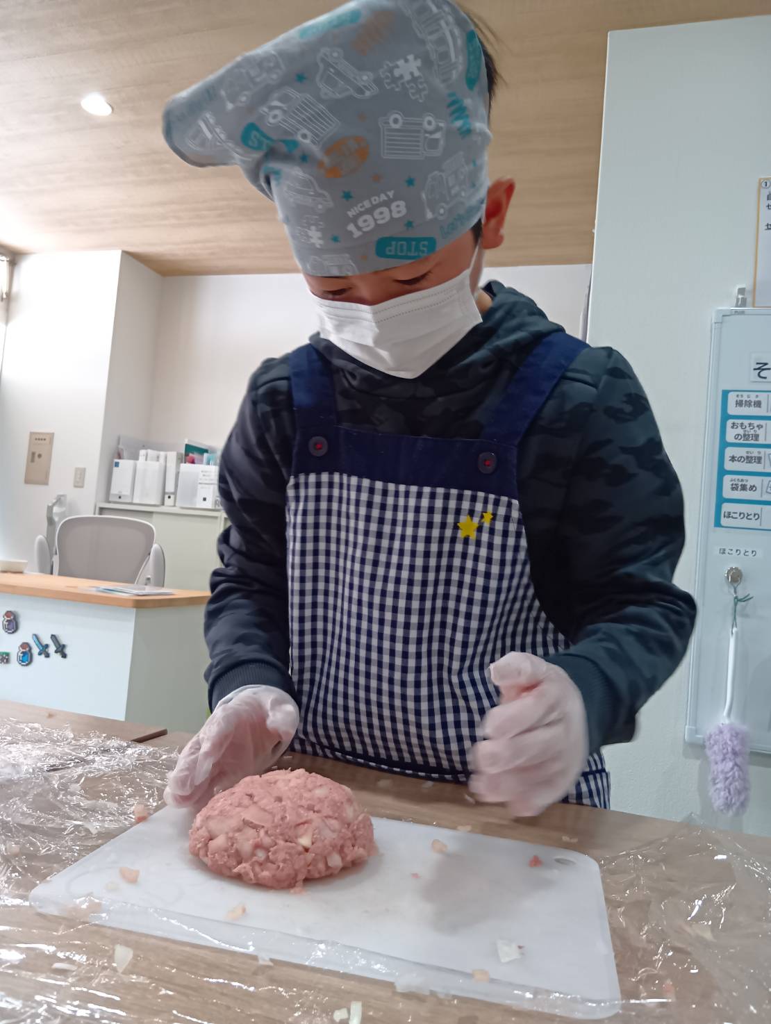 こんにちは須磨校です先日、プログラミング須磨校と合同でハンバーグ作りを行いました