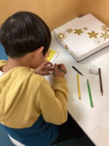 「塗り残しはないかな?」と 真剣な表情で取り組む姿がとても印象的でした。 焼くとどんどん小さくなっていくプラ板に 「すごい!」「ちっちゃくなった!」と 大盛り上がり