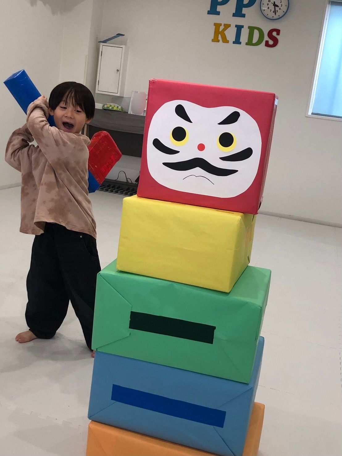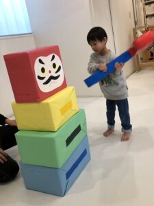 一番盛り上がったのはKIDS特製の特大だるま落とし✨