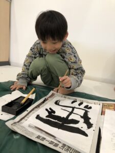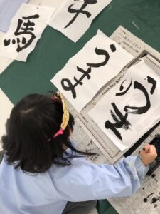 KIDSでは書き初め、かるた、だるま落としなどの