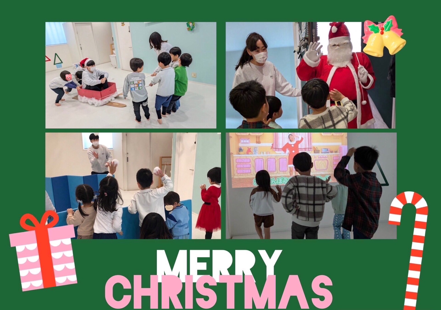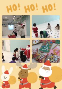 Happy Christmas music started, and it was time to move our bodies The kids rode sleighs , delivered presents , and did their very best during exercise クリスマス音楽に合わせて、元気に体操スタート